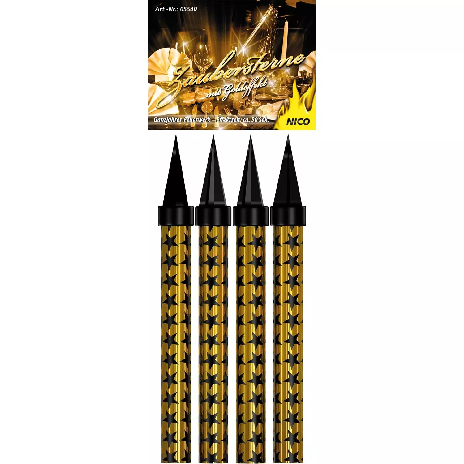kein Versand, nur Abholung4 große goldene Zimmerfontänen im Klarsichtbeutel. Wir vergolden den Tag – mit den exklusiven NICO Zaubersternen! Jetzt NEU in GOLD! Die Zimmerfontänen haben eine Länge 16 cm und sprühen 50 Sekunden lang goldene Sterne. Perfekt für Hochzeiten, Geburtstage oder Partys!